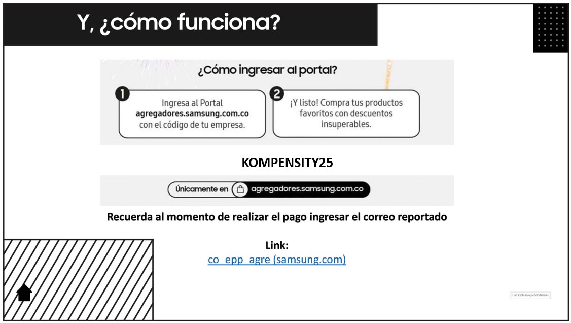 SAMSUNG Alianzas es un lugar exclusivo donde nuestros asociados y sus familias podrán tener beneficios especiales, con descuentos del 10% hasta el 40% en todo el portafolio de productos.