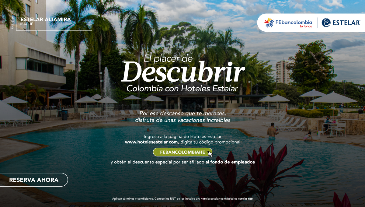 Consulta todos los destinos en los que tenemos presencia ingresando a https://www.hotelesestelar.com/ con el código promocional FEBANCOLOMBIAHE.