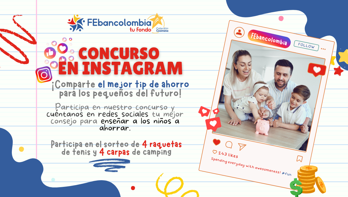 Comparte en los comentarios de nuestras publicaciones en Instagram, tu mejor tip para enseñar a los niños el valor de ahorrar y participa por premios increíbles.