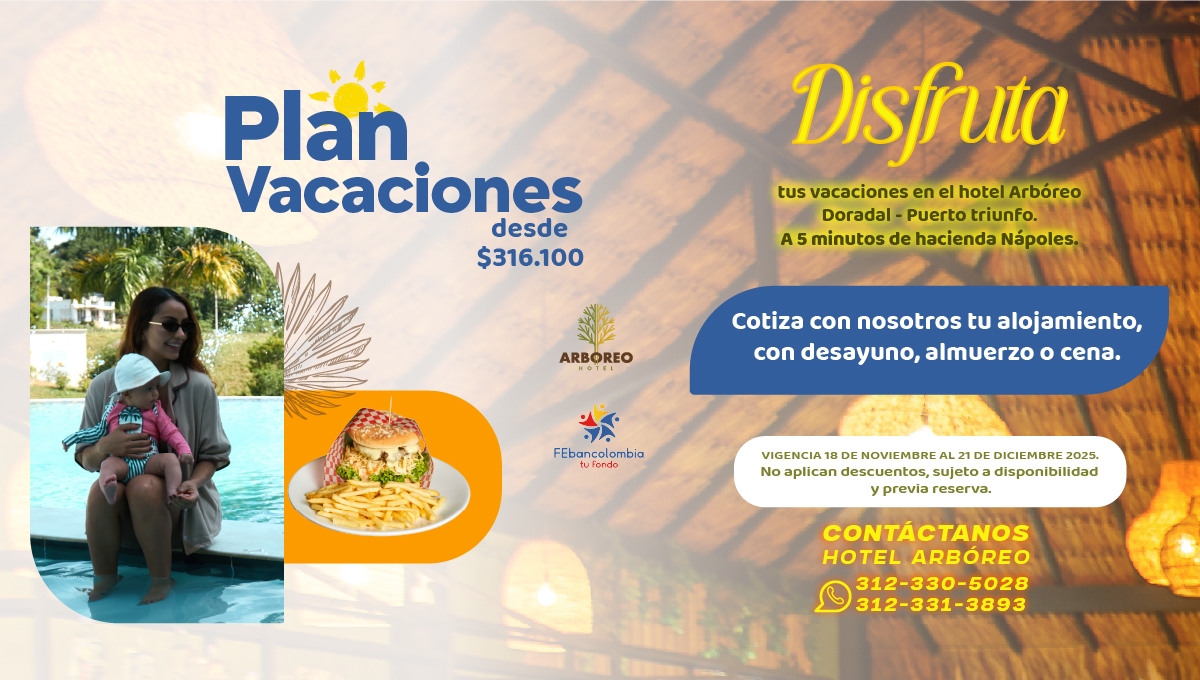 Disfruta de un oasis de comodidad y naturaleza en la Autopista Medellín-Bogotá, kilómetro 111. Exclusivamente para los asociados de FEBANCOLOMBIA, ofrecemos tarifas preferenciales con descuentos desde el 20% en reservas, que incluyen desayuno y acceso gratuito al Cine los fines de semana.
