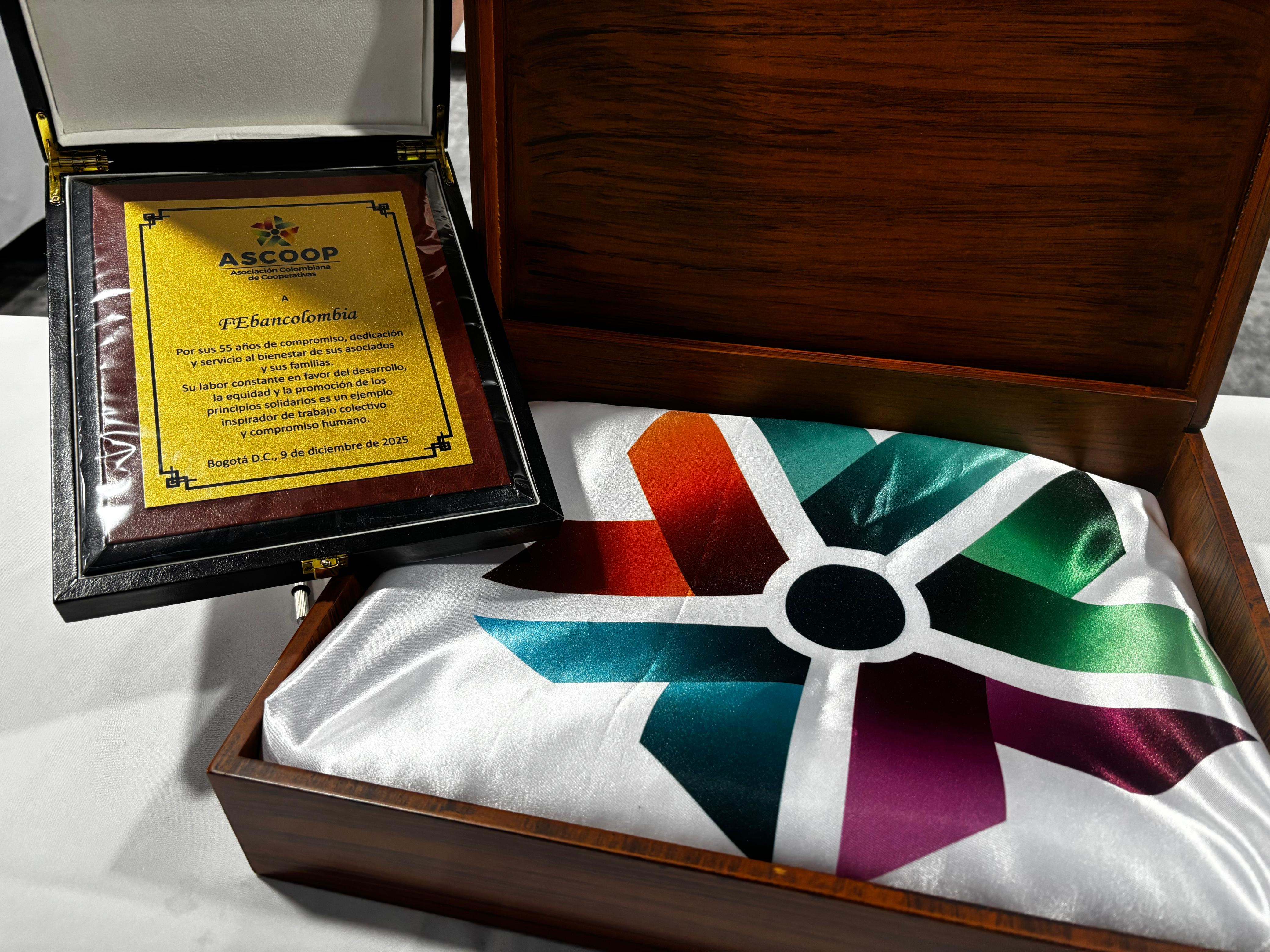 En el marco de nuestro aniversario número 55, FEbancolombia recibió un reconocimiento especial por parte de ASCOOP (Asociación Colombiana de Cooperativas), uno de los organismos gremiales más importantes del país y referente nacional en el fortalecimiento del modelo cooperativo y solidario.
